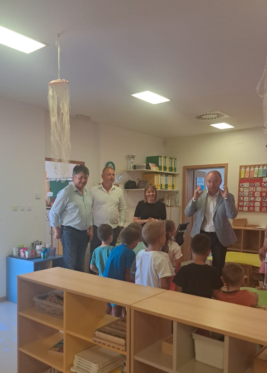 Tijekom posjeta, ministar Šipić obišao je dječji vrtić „Cvrčak“ u Posedarju, kojem je Ministarstvo demografije i useljeništva također osiguralo bespovratna sredstva. Općina Posedarje je kroz Poziv za dodjelu bespovratnih sredstava „Dostupnost kvalitetne skrbi za djecu u lokalnim zajednicama kroz poboljšanje materijalnih uvjeta u dječjim vrtićima“ dobila 49.765,73 € za projekt „Opremanje i uređenje dječjeg vrtića „Cvrčak“. Ukupna vrijednost ovog projekta iznosi 62.207,16 €.